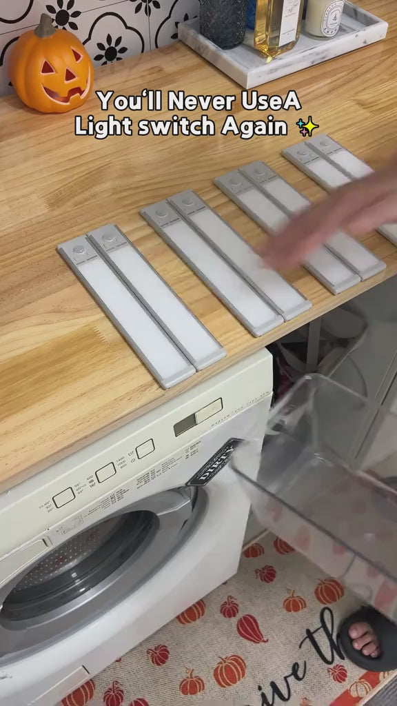 Rechargeable motion-activated lights with 5 brightness levels. Auto-on in darkness, auto-off when you leave. Magnetic install, no wiring needed. Perfect for kitchens, closets, stairs.